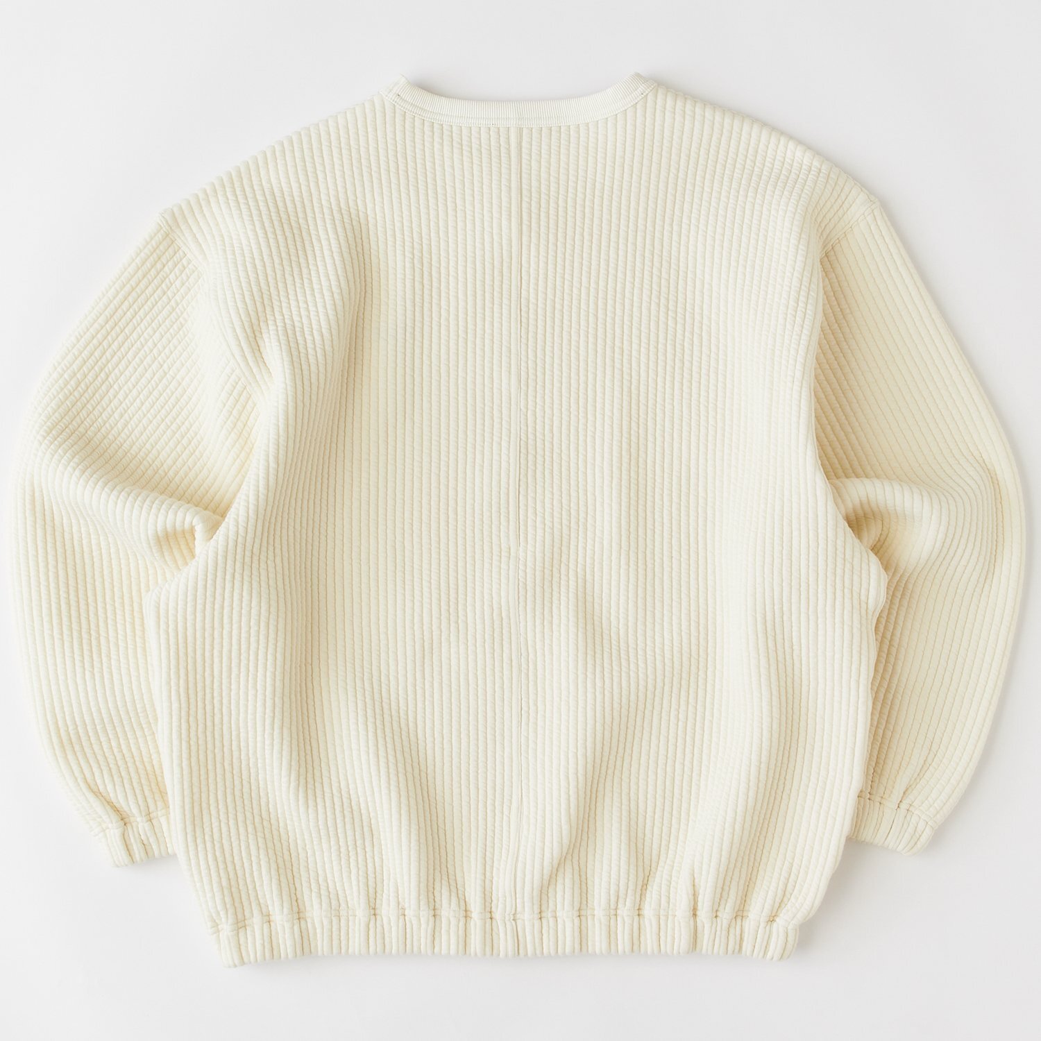 中綿入りのカット素材を使用することで、独特な暖かみのある仕上がりになったクルーネックスウェット。