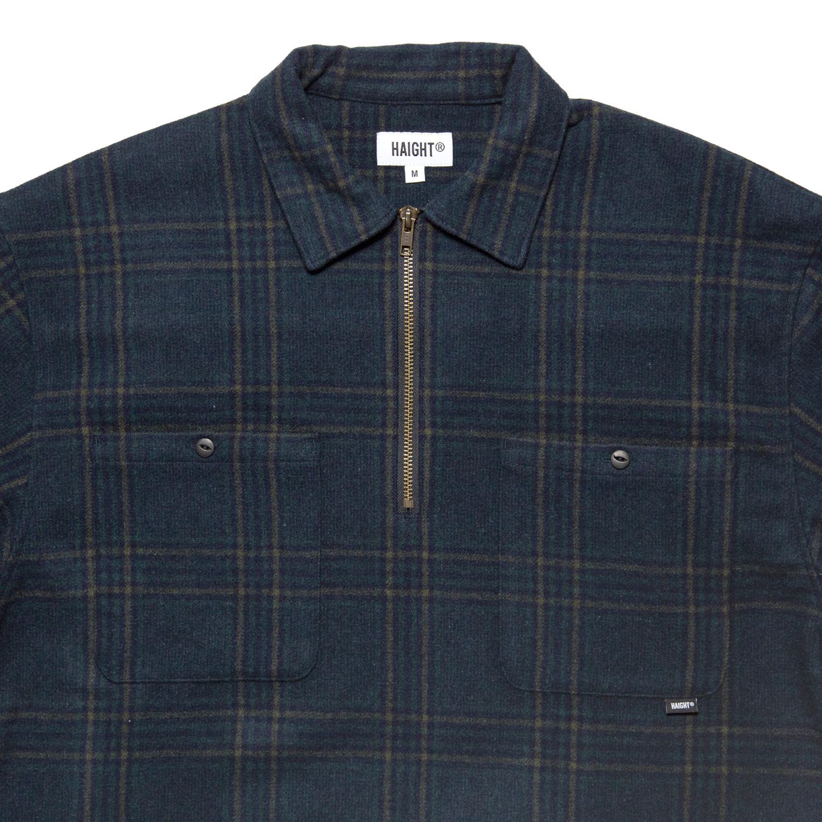 レイヤードに映える、ウール混フランネルのハーフジップチェックシャツ。