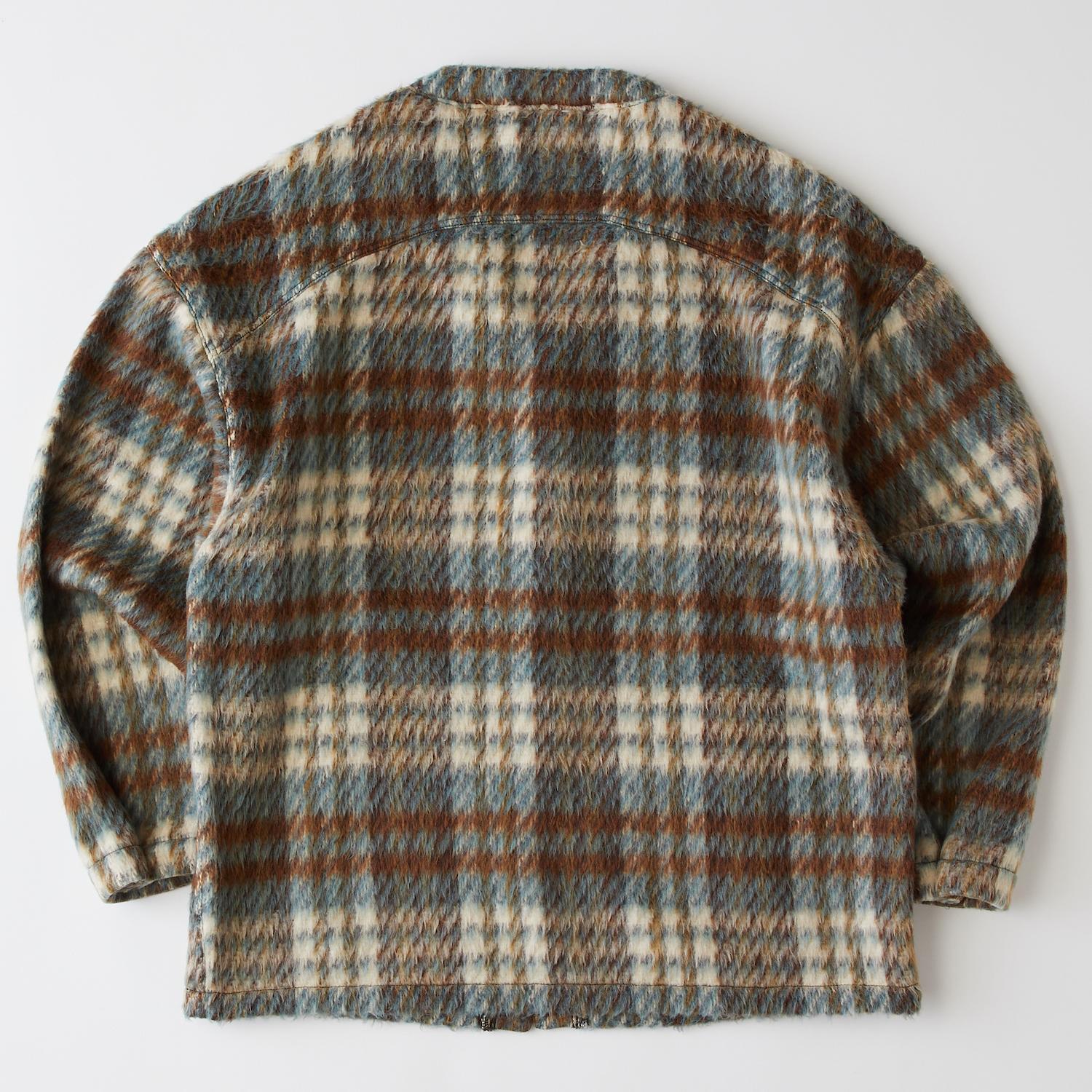 モヘアライクな起毛感が特徴のチェック素材を使用したスナップカーディガン。