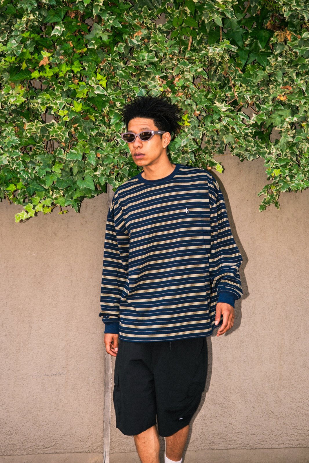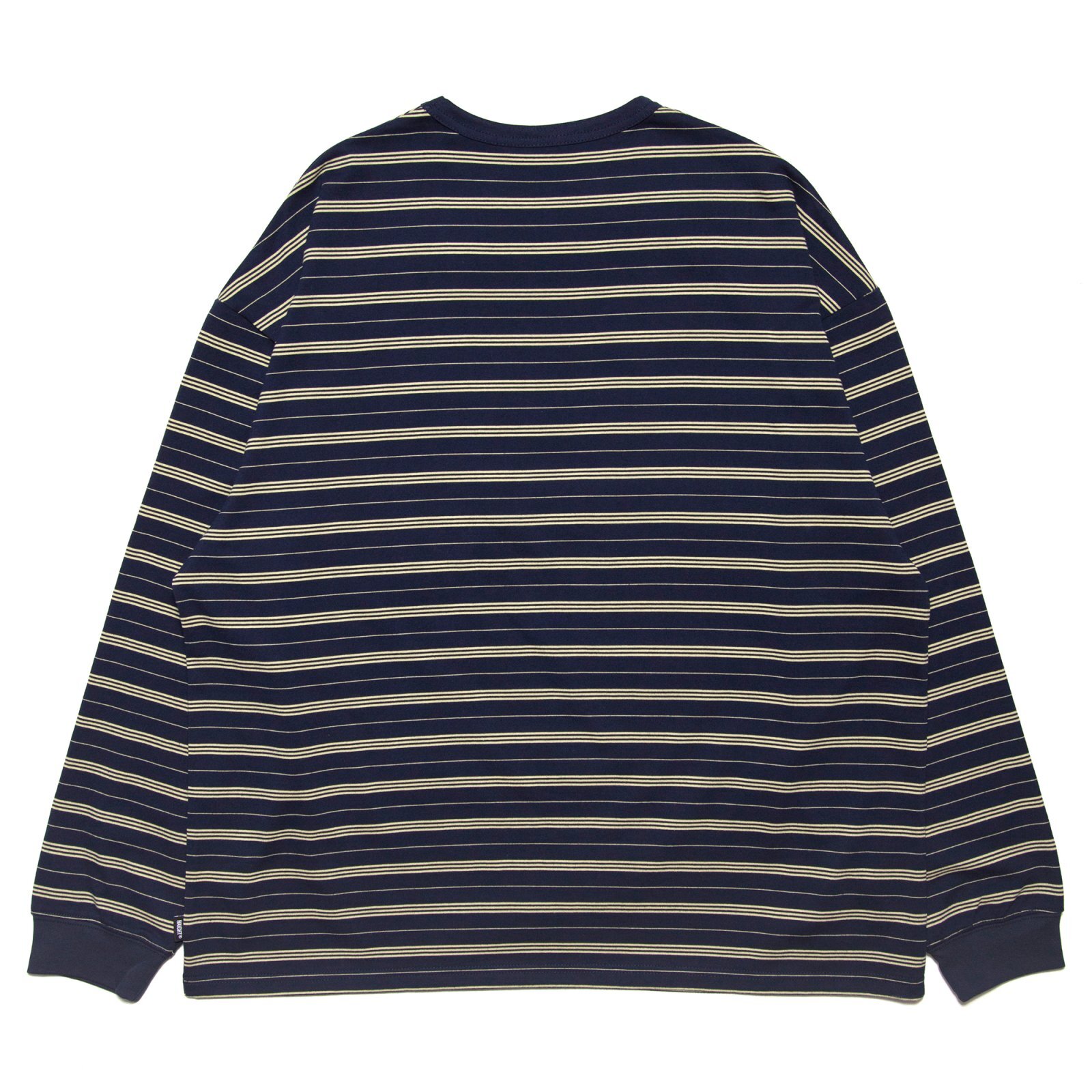 クラシックなボーダーに遊び心を添えた、天竺素材のボックスシルエットLS Tee。