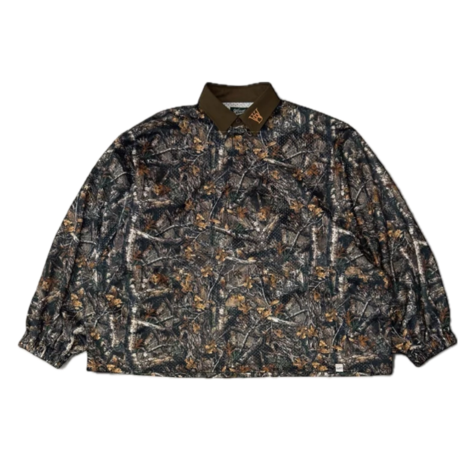オリジナルのリアルツリーカモ柄にカラーマッチした襟にオレンジの刺繍をアクセントに。