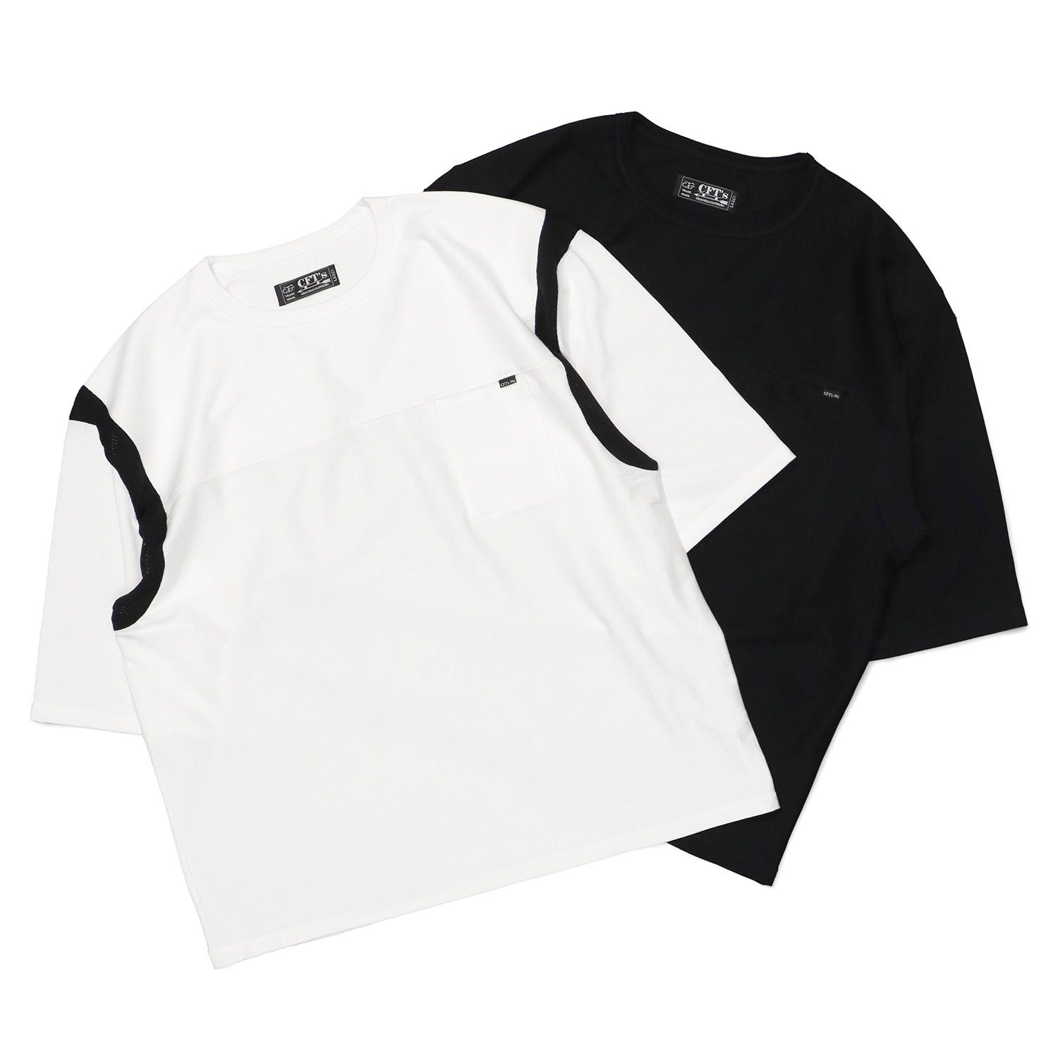 柔らかな肌馴染みの良い30/2度詰め天竺をベースにメッシュ素材を使用した七部袖切り替えフットボールTシャツ。
