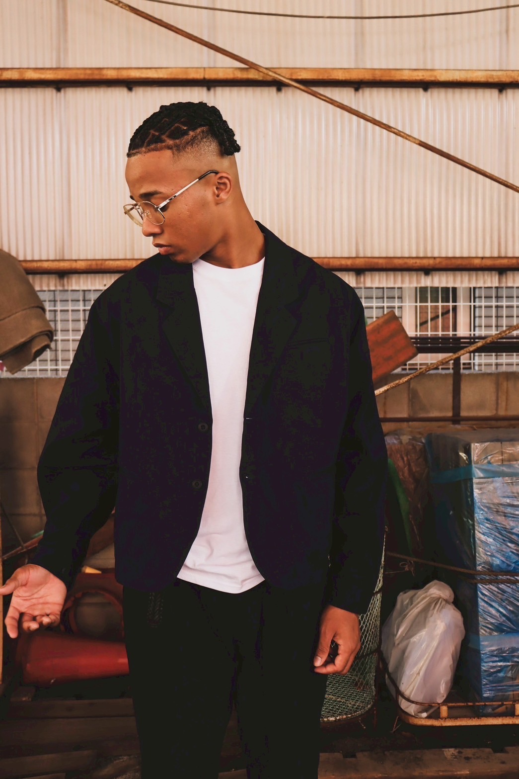 短丈で身幅広めのBOXシルエットの2ボタンジャケット。
