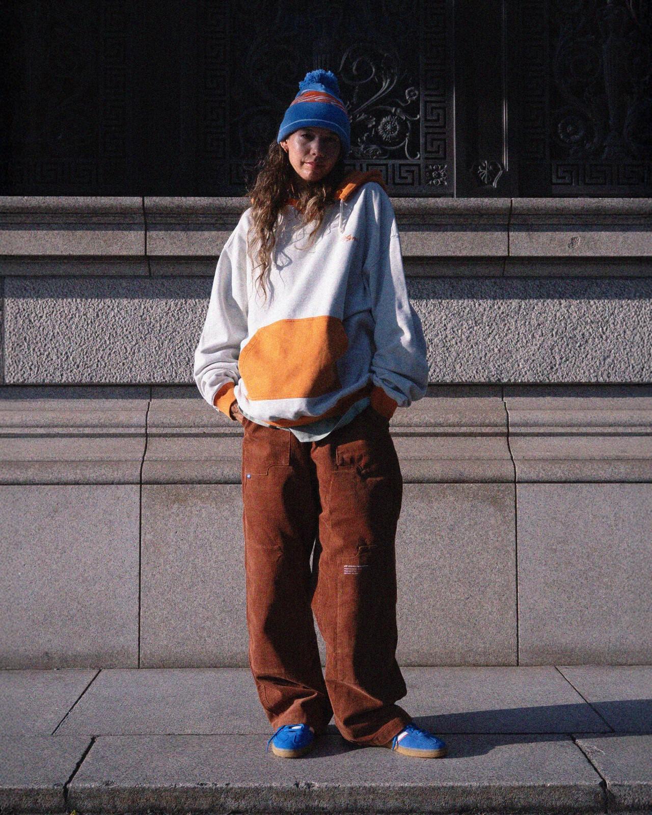 しっかりとしたコットン生地の風合いを活かし、ボディ・フード・カンガルーポケットをそれぞれ異なるカラーで切り替えたツートーンデザインが唯一無二の存在感を放つ。
